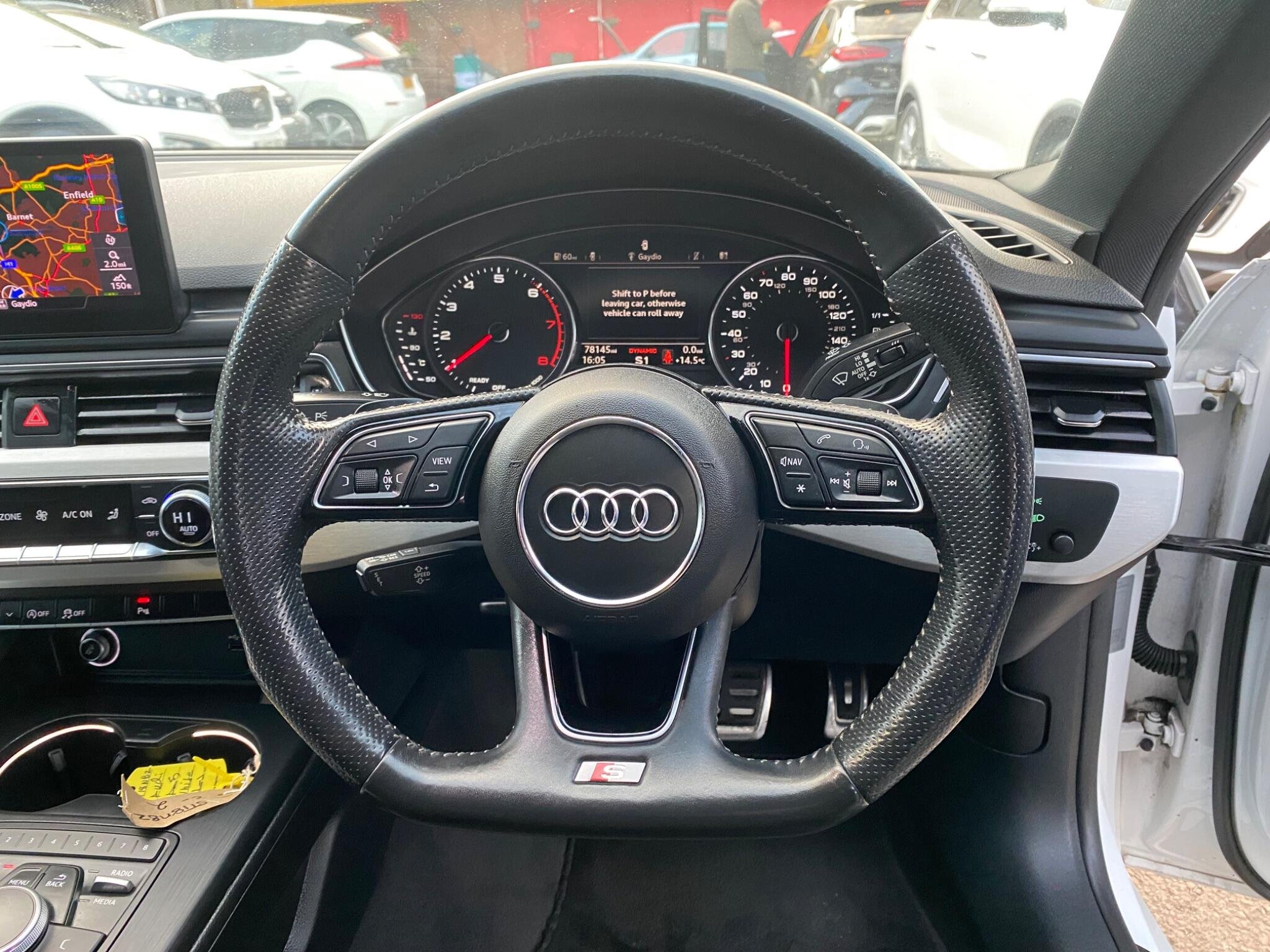- High Multi-Function 3-Spoke Leather Steering Wheel with Grips in Perforated Leather and S Badging with Gear-Shift Paddles