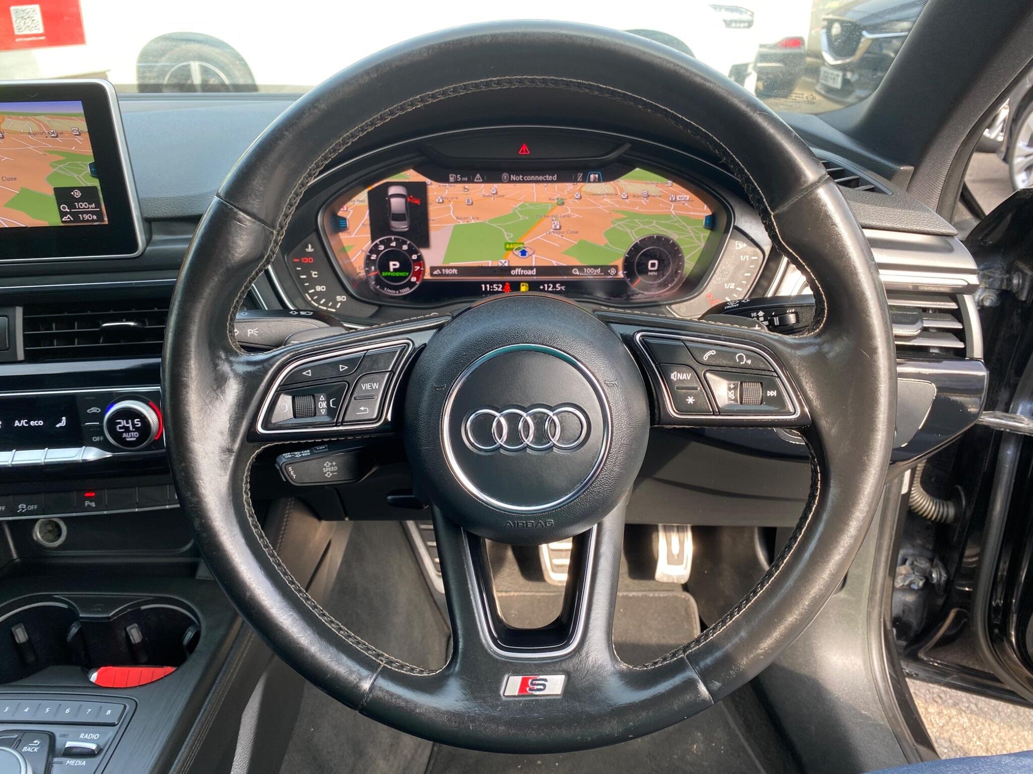 - S Line 3-Spoke Leather Multi-function Sport Steering Wheel - Grips in Perforated Leather