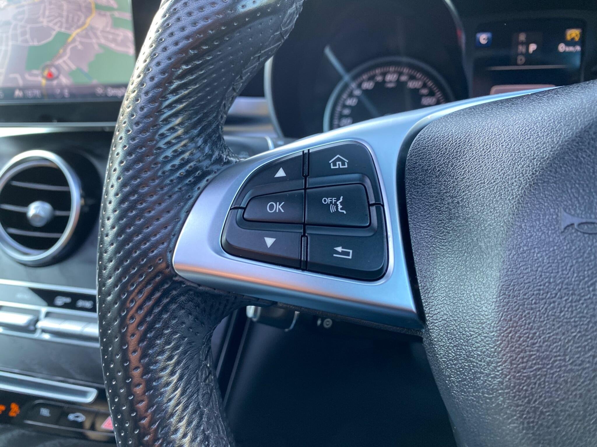 - Steering Wheel - 3-spoke Multi-function AMG in Black Leather with Flattened Bottom Section and Chrome Inserts and Perforated Leather in Grip Area